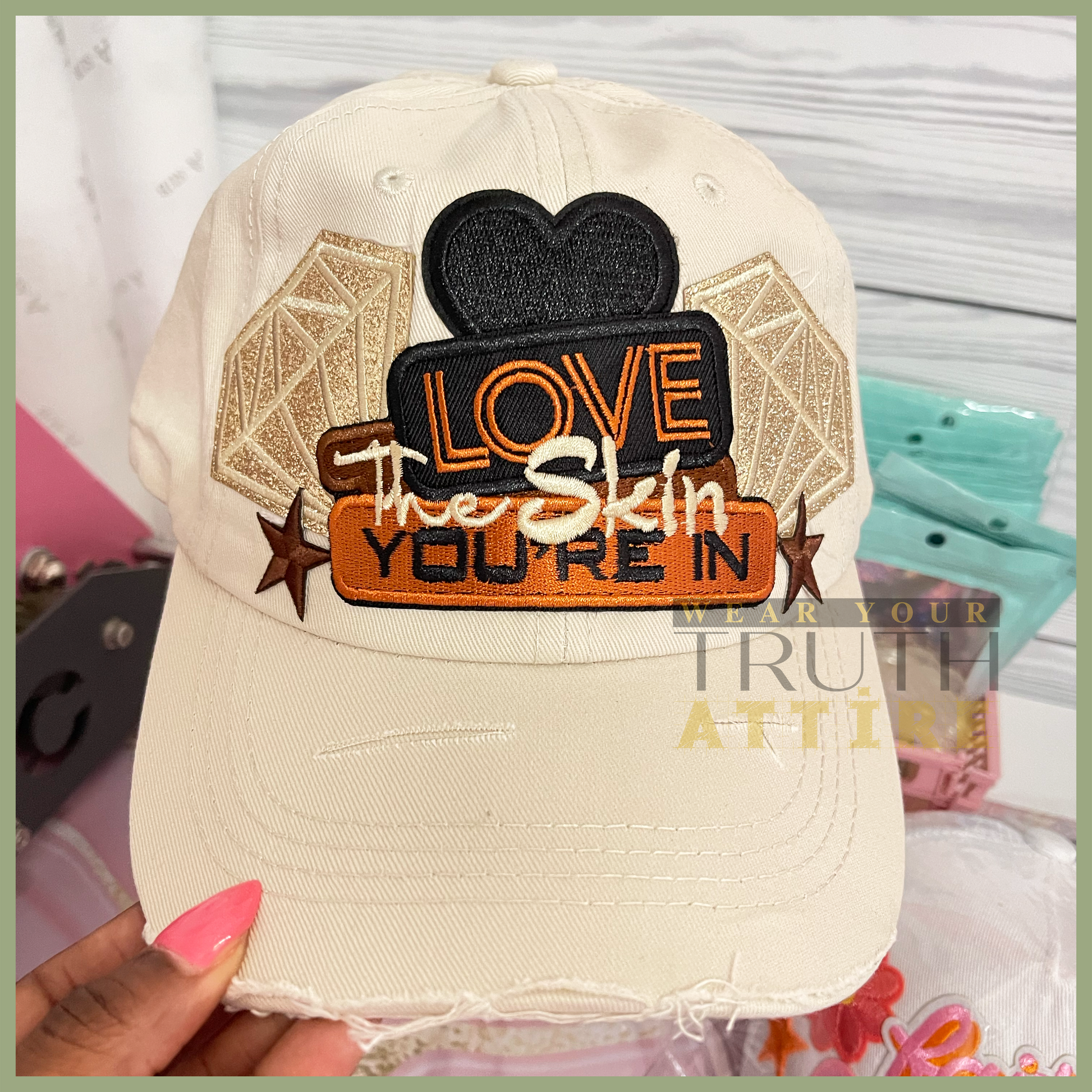 Love the Skin Your In Distressed Hat